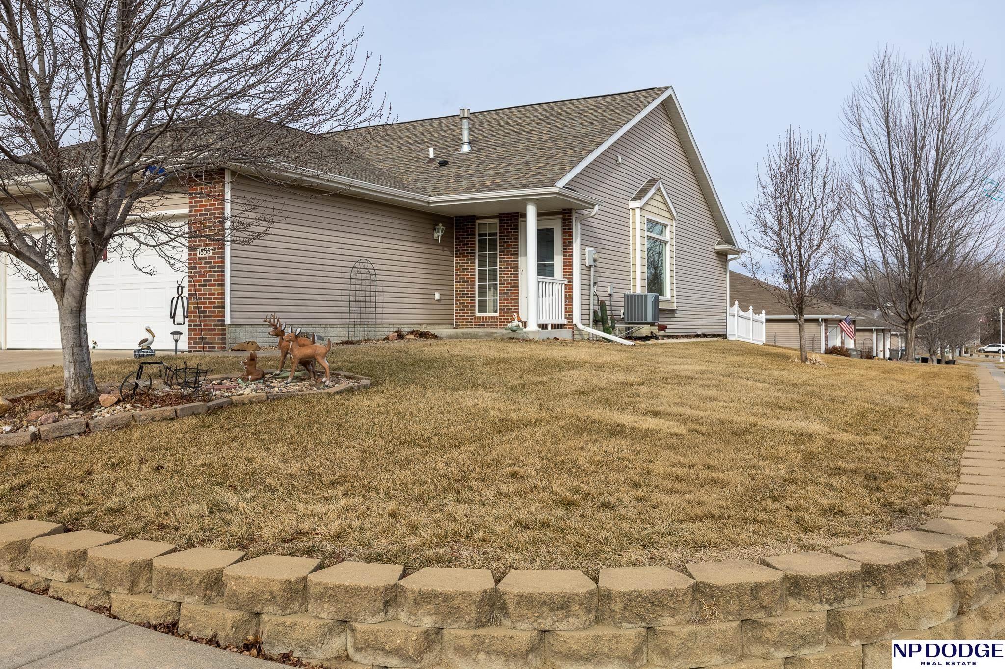 Nestled into a quiet Northwest Lincoln neighborhood, this 2007 2-bed, 1.25 bath, ranch-style townhouse sits on a relatively larger corner lot. The exterior features a two-stall garage, two-year old roof, and fenced backyard. Inside you'll be impressed by the vaulted ceilings, large picture window, like-new carpeting, and spacious living area. The open concept flows smartly to informal dining and a functional kitchen, the latter of which has stainless steel appliances, myriad storage, and lovely under cabinet lighting. Utilities, laundry, and garage and are conveniently accessible right off of the kitchen as well. The home features two bedrooms, both of which have direct access to the primary bathroom, and also include larger-than-expected closets. The larger bedroom includes an exterior door to the patio and backyard. The half bath is right between the second bedroom and the living room. New water heater installed in '25. HOA includes lawn care, snow, common area maintenance, and more!