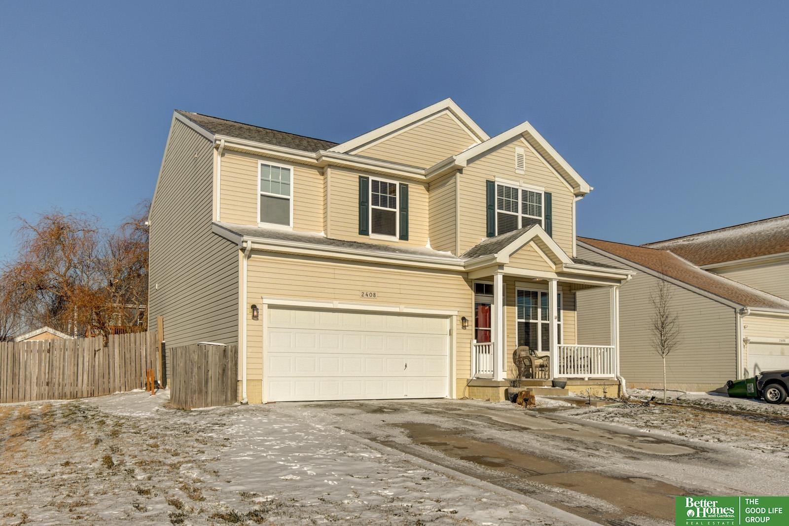 Welcome to Summit Ridge, one of Papillion’s best kept secrets! This warm and inviting two-story greets you with a classic front porch and tons of natural light throughout. The kitchen is built for real life with a center island, pantry, and easy flow into the living room anchored by a cozy fireplace. Upstairs, the primary suite offers a walk-in closet and plenty of space to unwind, plus two additional bedrooms and the convenience of second-floor laundry. The finished basement is a standout with a second fireplace, ¾ bath, and great flex space for entertaining, workouts, or movie nights. Out back, enjoy a flat, private yard perfect for relaxing evenings or weekend gatherings. A home that just feels right the moment you walk in, close to recreation, dining, shopping, and everything Papillion has to offer!